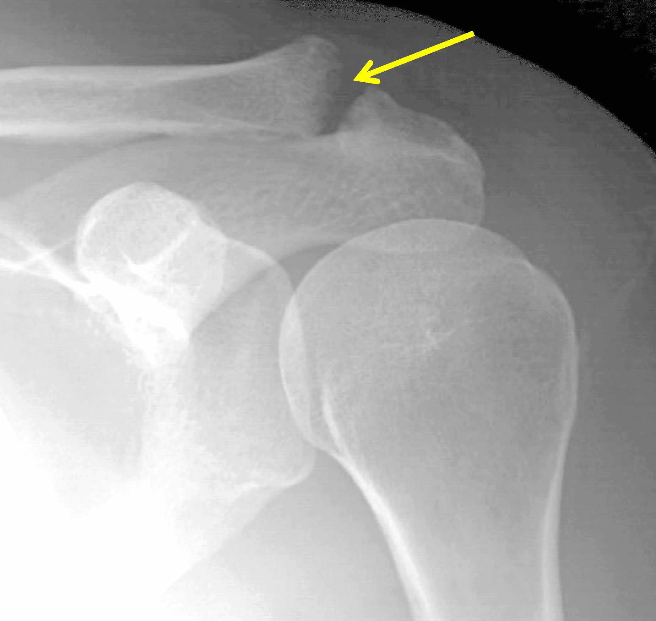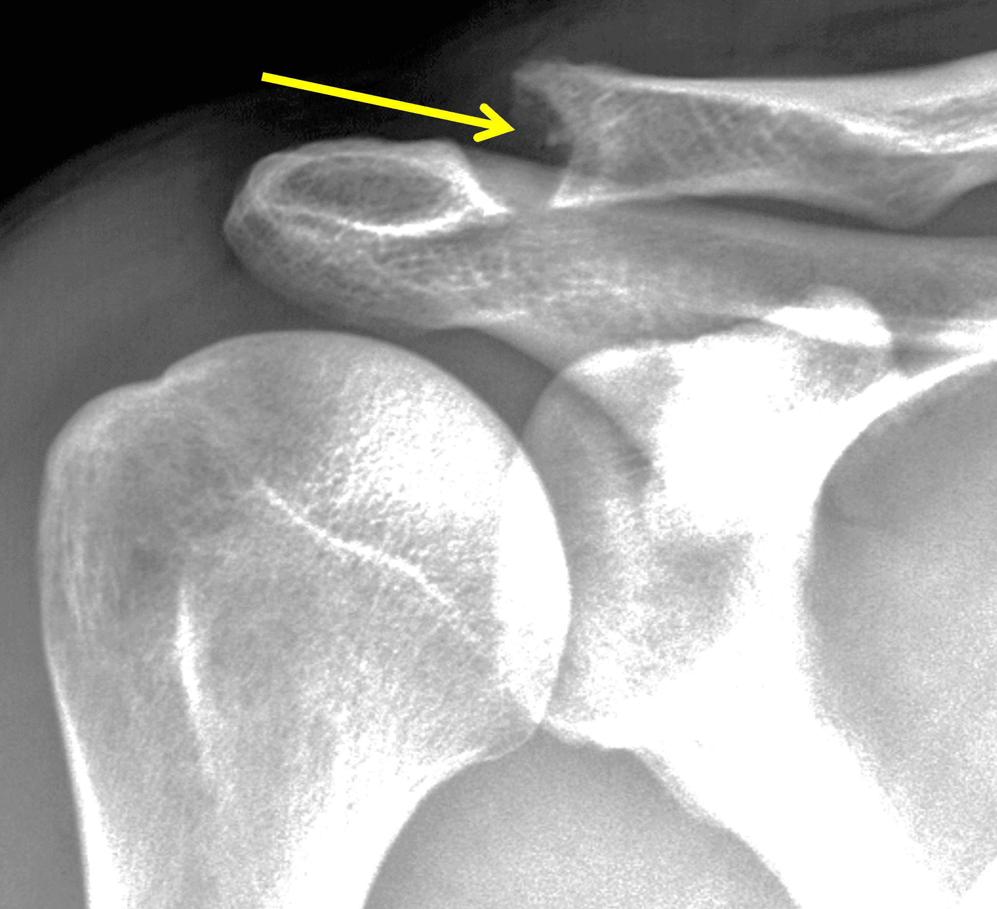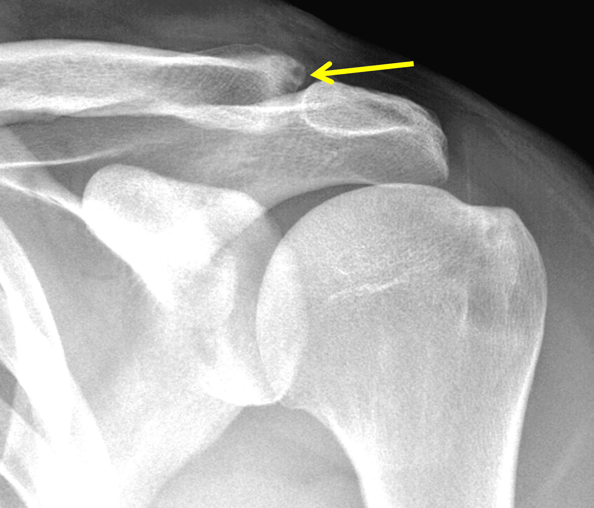 1. Yu YS, Dardani M, Fischer RA. MR observations of postraumatic osteolysis of the distal clavicle after traumatic separation of the acromioclavicular joint. J Comput Assist Tomogr. 2000;24(1):159-164. doi:10.1097/00004728-200001000-00028