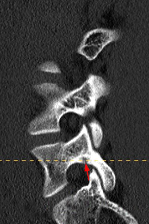 - Wick, L. F., Kaim, A., & Bongartz, G. (2000). Retroisthmic cleft: a stress fracture of the lamina. Skeletal Radiology, 29(3), 162–164. https://doi.org/10.1007/s002560050586 ↩