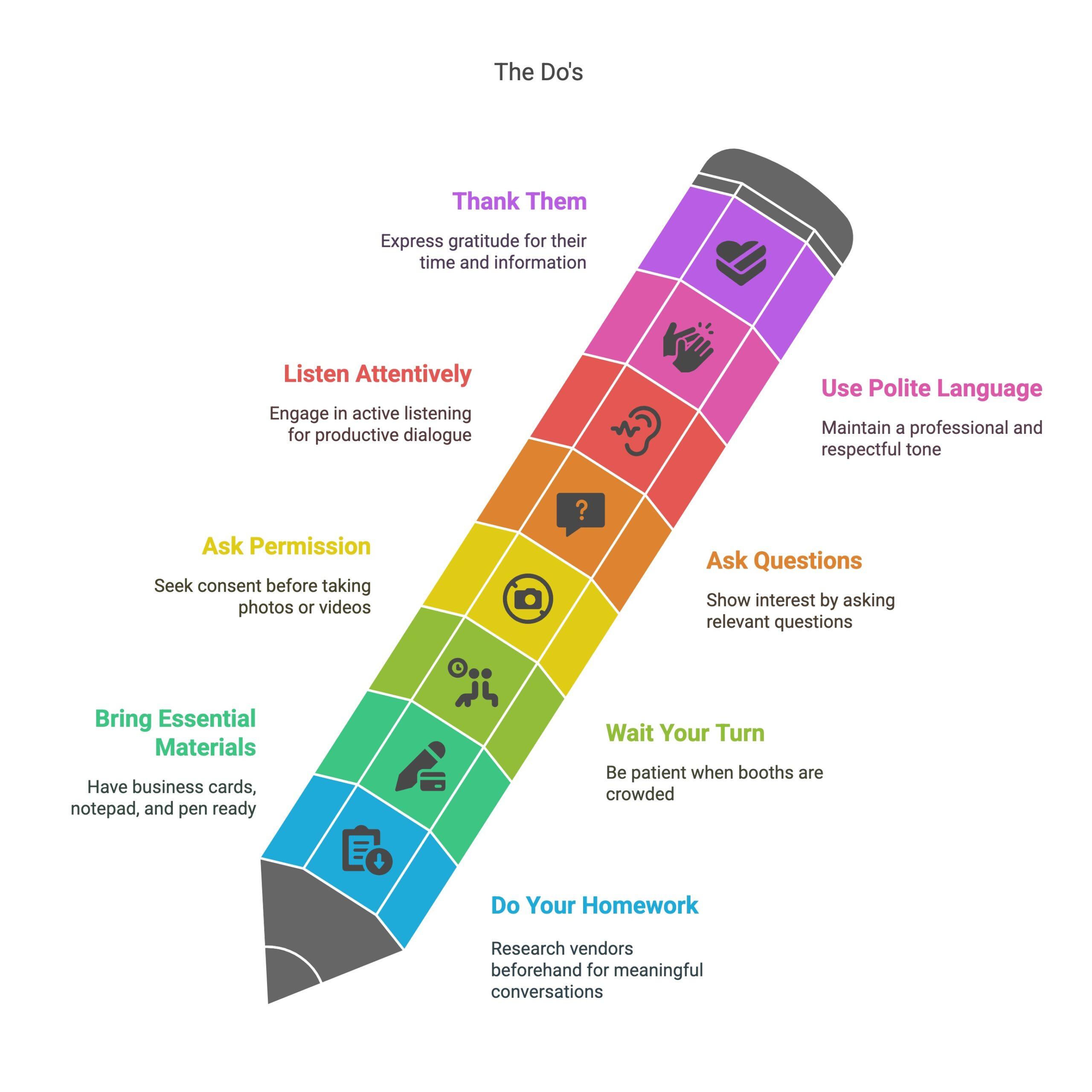 s are bustling hubs of innovation, networking, and business opportunities. Whether you’re a seasoned attendee or a newcomer, understanding vendor etiquette is essential for making the most out of your trade show experience. By following these do’s and avoiding the don’ts, you can ensure productive, respectful interactions that benefit both you and the vendors.